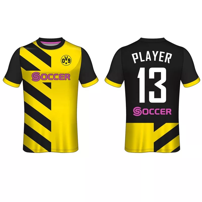 ການພິມ sublimation ແມ່ນເຫມາະສົມສໍາລັບ jerseys ບານເຕະເນື່ອງຈາກວ່າມັນອະນຸຍາດໃຫ້ສໍາລັບການພິມທີ່ມີຄວາມລະອຽດສູງທີ່ບໍ່ພຽງແຕ່ປະທັບໃຈກ່ຽວກັບຄວາມງາມ, ແຕ່ຍັງທົນທານທີ່ສຸດ. ຂະບວນການນີ້ເຮັດໃຫ້ພວກເຮົາສາມາດຜະລິດ jerseys ທີ່ມີຮູບແບບສະລັບສັບຊ້ອນ, ໂລໂກ້, ຕົວເລກ, ແລະລາຍລະອຽດຜູ້ສະຫນັບສະຫນູນທີ່ຍັງຄົງແຫຼມແລະ vibrant, ເຖິງແມ່ນວ່າຫຼັງຈາກການສວມໃສ່ແລະການລ້າງຢ່າງກວ້າງຂວາງ. ບໍ່ຄືກັບການພິມຫນ້າຈໍແບບດັ້ງເດີມ, sublimation ຮັບປະກັນວ່າການອອກແບບກາຍເປັນສ່ວນຫນຶ່ງຂອງຜ້າ, ດັ່ງນັ້ນການພິມຈະບໍ່ປອກເປືອກຫຼືແຕກ, ເຮັດໃຫ້ມັນສົມບູນແບບສໍາລັບເຄື່ອງນຸ່ງທີ່ມີການເຄື່ອນໄຫວເຊັ່ນ: ເສື້ອກິລາບານເຕະ.